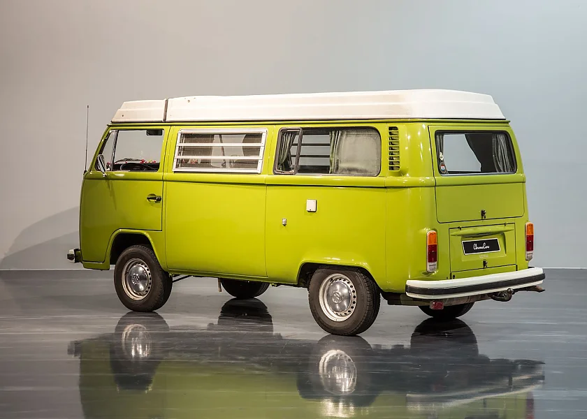 Dieser taigagrüne Westy wurde 1979 nach Belgien verkauft. 1987 fand er dann in Holland einen neuen Besitzer. Der Wagen ist in einem absolut originalen, unrestaurierten Zustand. Lediglich der Lack wurde vor einiger Zeit erneuert. Die Sitzbezüge, die Holzfurniere und der Tisch sind noch immer vorhanden und unberührt. Der T2 wurde zuletzt von zwei reizenden Ladys als Reisemobil genutzt. Bevor ChromeCars den Wagen übernahm, sind die beiden damit noch ein letztes Mal nach Frankreich in den Urlaub gefahren.